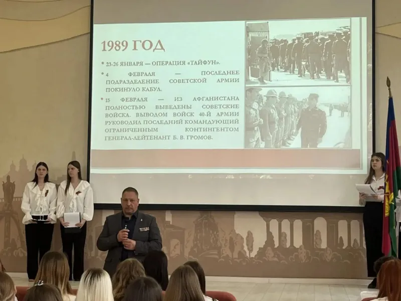 16 февраля в Краснодарском торгово-экономическом колледже прошло мероприятие, посвященное Дню памяти о россиянах, исполнявших служебный долг за пределами Отечества. Почетным гостем стал ветеран Ассоциации «Альфа-Краснодар» Карпенко Андрей Витальевич.